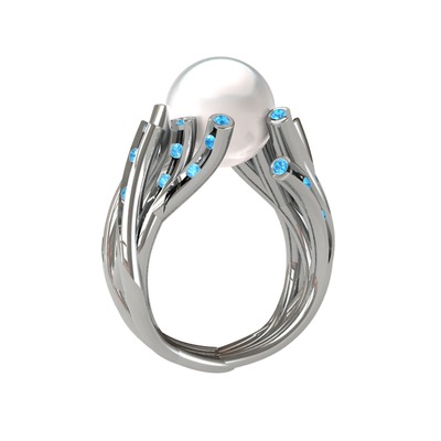 Inci ve akuamarin 14 ayar beyaz altın yüzük