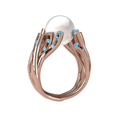 Inci ve akuamarin 18 ayar rose altın yüzük