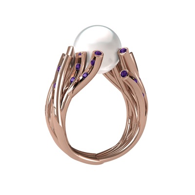 Inci ve ametist 925 ayar rose altın kaplama gümüş yüzük