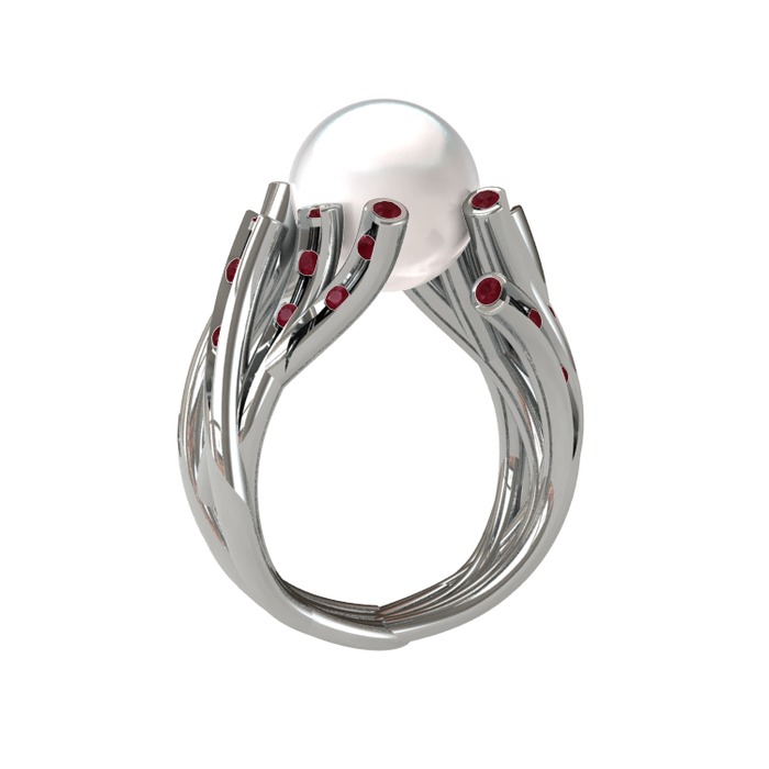 Inci ve kök yakut 8 ayar beyaz altın yüzük