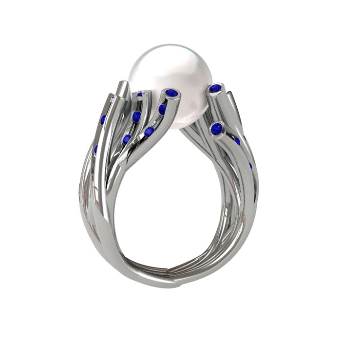 Inci ve lab safir 14 ayar beyaz altın yüzük