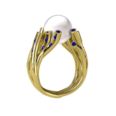 Inci ve lab safir 925 ayar altın kaplama gümüş yüzük