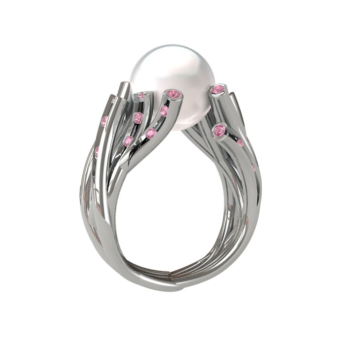 Inci ve pembe kuvars 925 ayar gümüş yüzük