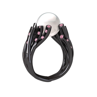 Inci ve pembe kuvars 925 ayar siyah rodyum kaplama gümüş yüzük