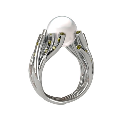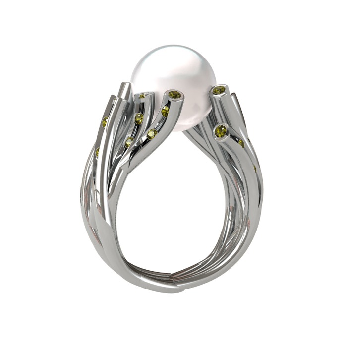 Inci ve peridot 18 ayar beyaz altın yüzük