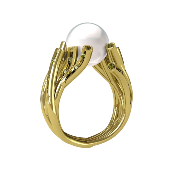 Inci ve peridot 925 ayar altın kaplama gümüş yüzük