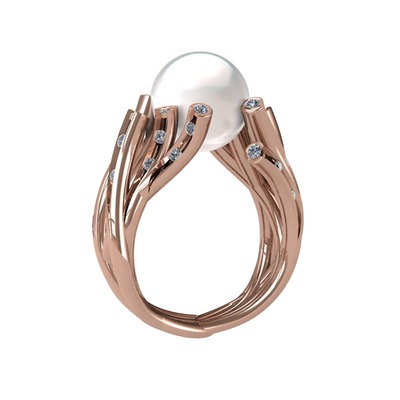 Inci ve pırlanta 18 ayar rose altın yüzük (0.48 karat)
