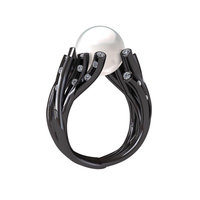 Inci ve pırlanta 925 ayar siyah rodyum kaplama gümüş yüzük (0.48 karat)