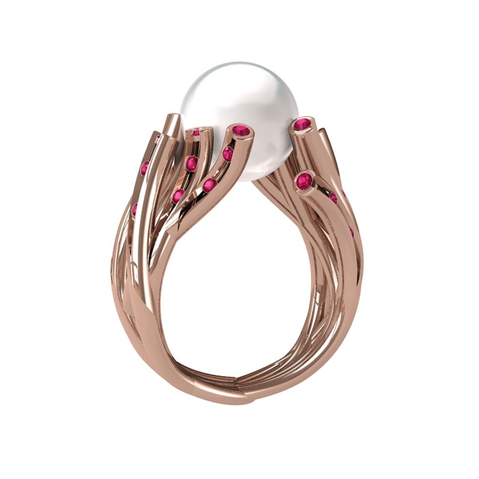 Inci ve rodolit garnet 925 ayar rose altın kaplama gümüş yüzük