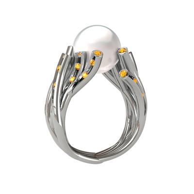 Inci ve sitrin 18 ayar beyaz altın yüzük