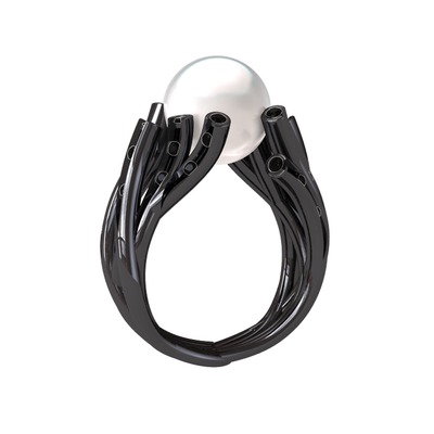 Inci ve siyah zirkon 925 ayar siyah rodyum kaplama gümüş yüzük