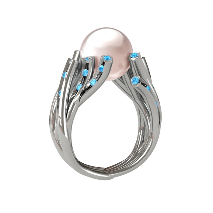 Pembe inci ve akuamarin 925 ayar gümüş yüzük