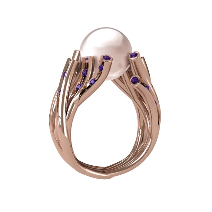Pembe inci ve ametist 925 ayar rose altın kaplama gümüş yüzük