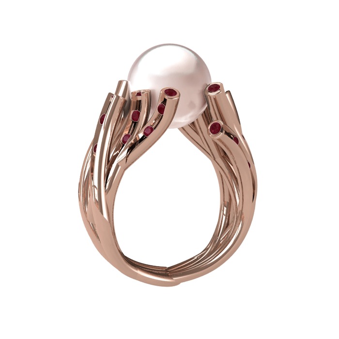 Pembe inci ve kök yakut 925 ayar rose altın kaplama gümüş yüzük