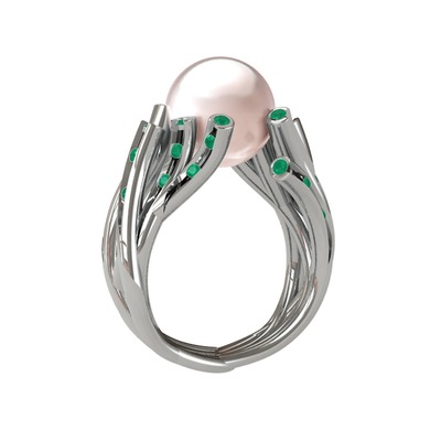 Pembe inci ve kök zümrüt 8 ayar beyaz altın yüzük