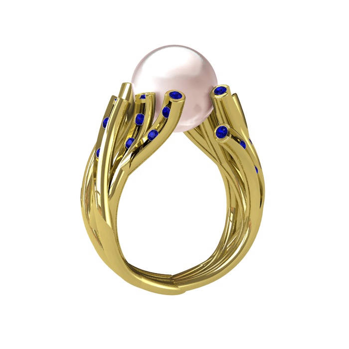 Pembe inci ve lab safir 8 ayar altın yüzük