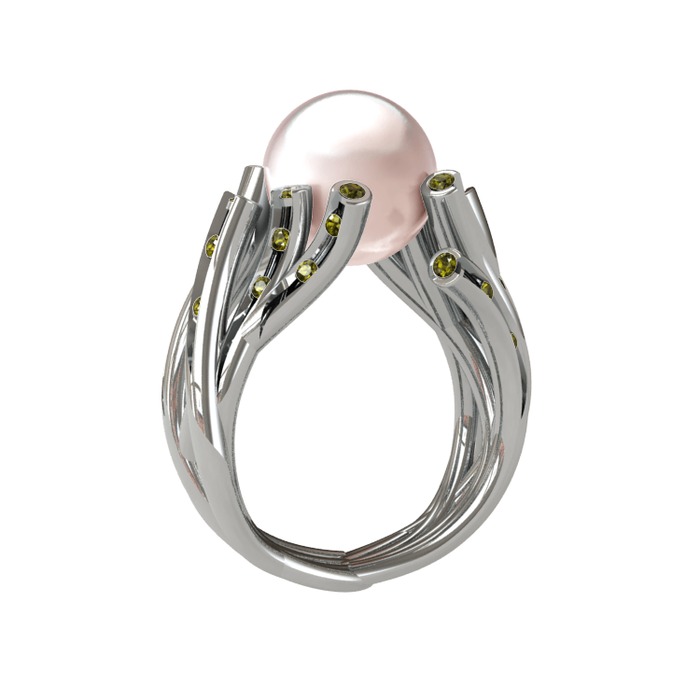 Pembe inci ve peridot 18 ayar beyaz altın yüzük
