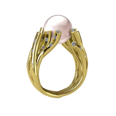 Pembe inci ve pırlanta 8 ayar altın yüzük (0.48 karat)