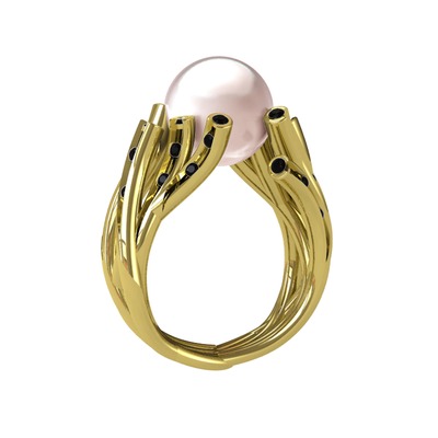 Pembe inci ve siyah zirkon 18 ayar altın yüzük