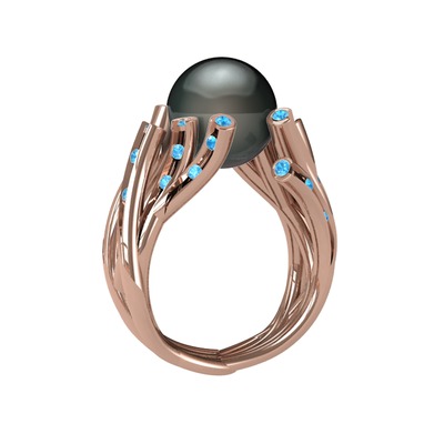Siyah inci ve akuamarin 8 ayar rose altın yüzük