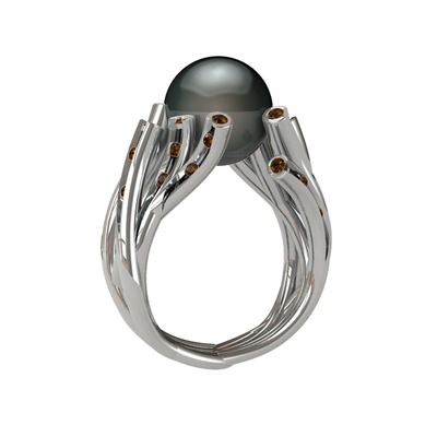 Siyah inci ve dumanlı kuvars 925 ayar gümüş yüzük