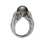 Siyah inci ve kök yakut 14 ayar beyaz altın yüzük