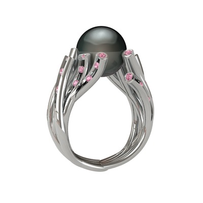 Siyah inci ve pembe kuvars 18 ayar beyaz altın yüzük