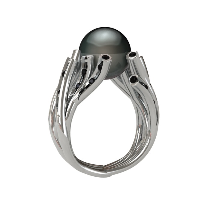 Siyah inci ve siyah zirkon 14 ayar beyaz altın yüzük