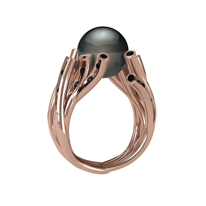 Siyah inci ve siyah zirkon 8 ayar rose altın yüzük