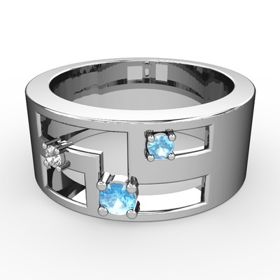Akuamarin ve beyaz zirkon 18 ayar beyaz altın yüzük