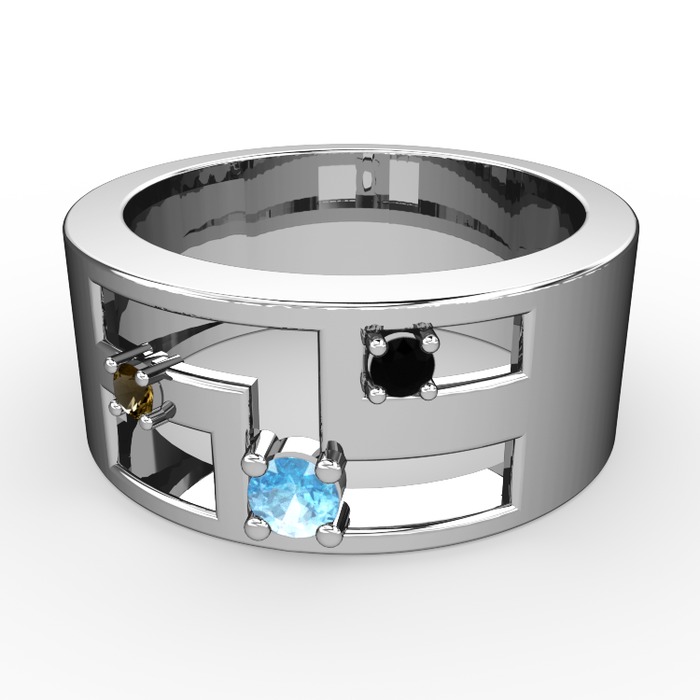 Akuamarin, dumanlı kuvars ve siyah zirkon 14 ayar beyaz altın yüzük