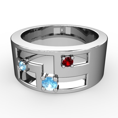 Akuamarin ve garnet 18 ayar beyaz altın yüzük