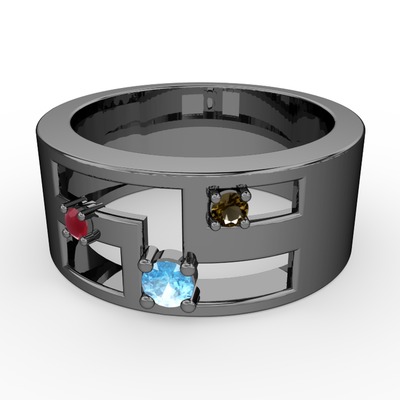 Akuamarin, kök yakut ve dumanlı kuvars 925 ayar siyah rodyum kaplama gümüş yüzük