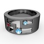 Akuamarin ve kök yakut 925 ayar siyah rodyum kaplama gümüş yüzük