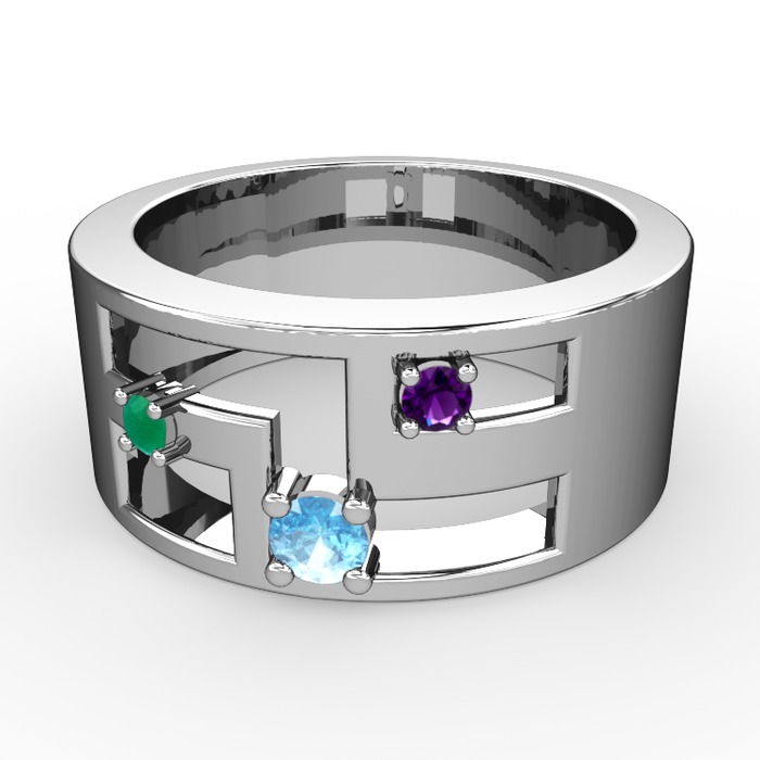 Akuamarin, kök zümrüt ve ametist 925 ayar gümüş yüzük
