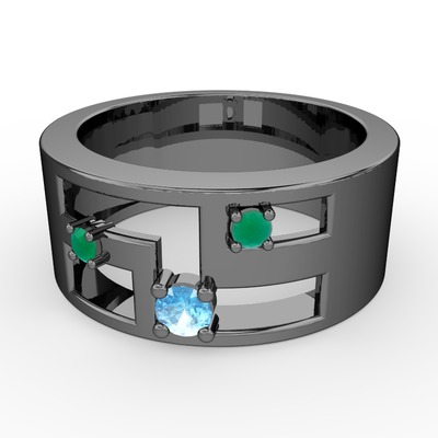 Akuamarin ve kök zümrüt 925 ayar siyah rodyum kaplama gümüş yüzük