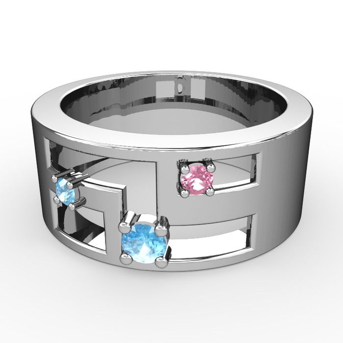Akuamarin ve pembe kuvars 18 ayar beyaz altın yüzük
