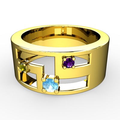 Akuamarin, peridot ve ametist 18 ayar altın yüzük