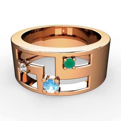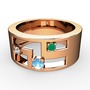 Akuamarin, pırlanta ve kök zümrüt 8 ayar rose altın yüzük (0.036 karat)