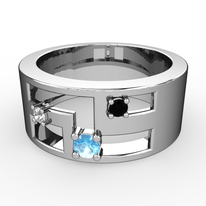 Akuamarin, pırlanta ve siyah zirkon 14 ayar beyaz altın yüzük (0.036 karat)