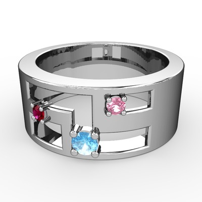 Akuamarin, rodolit garnet ve pembe kuvars 8 ayar beyaz altın yüzük