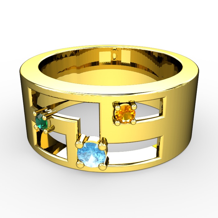 Akuamarin, yeşil kuvars ve sitrin 18 ayar altın yüzük