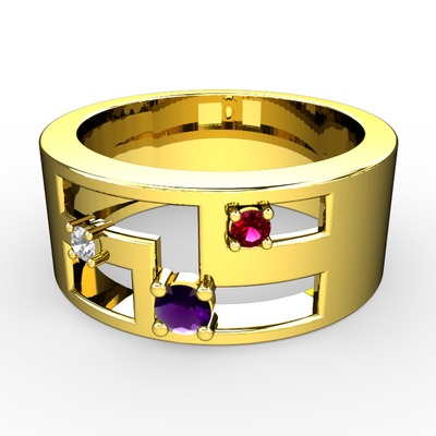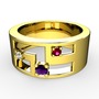 Ametist, beyaz zirkon ve rodolit garnet 14 ayar altın yüzük