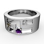 Ametist, dumanlı kuvars ve beyaz zirkon 925 ayar gümüş yüzük