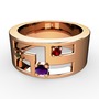 Ametist, dumanlı kuvars ve garnet 14 ayar rose altın yüzük