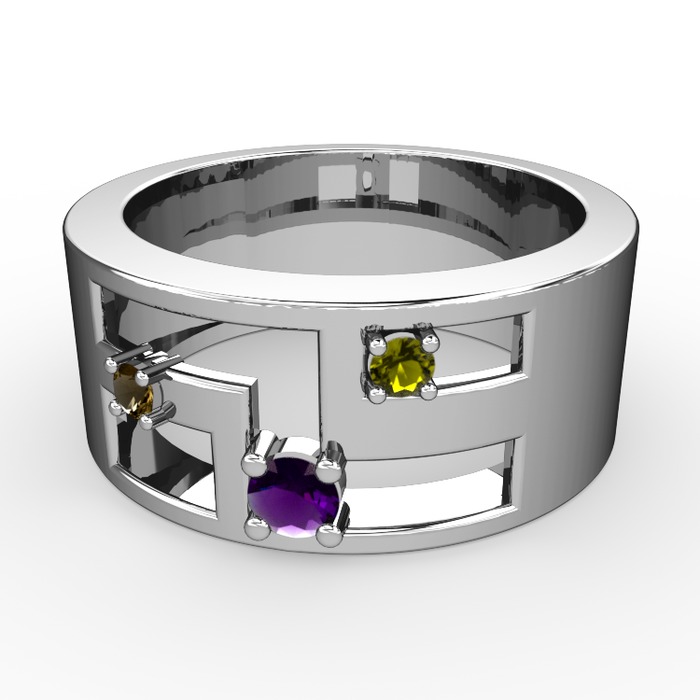 Ametist, dumanlı kuvars ve peridot 14 ayar beyaz altın yüzük