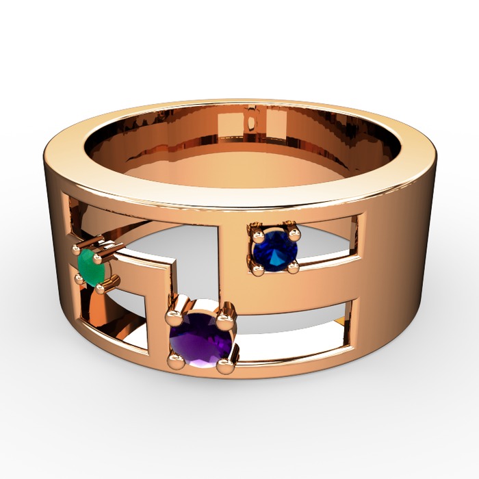 Ametist, kök zümrüt ve lab safir 14 ayar rose altın yüzük