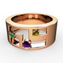 Ametist, kök zümrüt ve peridot 925 ayar rose altın kaplama gümüş yüzük