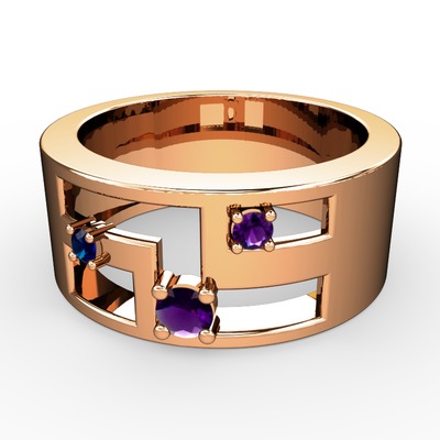 Ametist ve lab safir 925 ayar rose altın kaplama gümüş yüzük