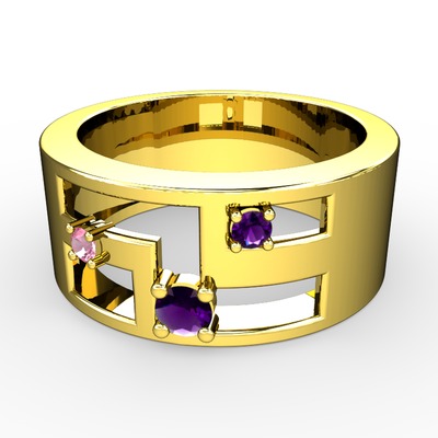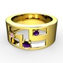 Ametist ve pembe kuvars 14 ayar altın yüzük